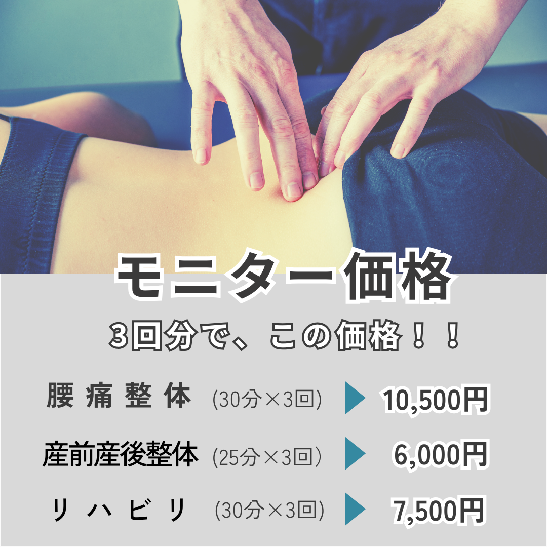 整体/自費リハの3回コースモニターを募集しています。